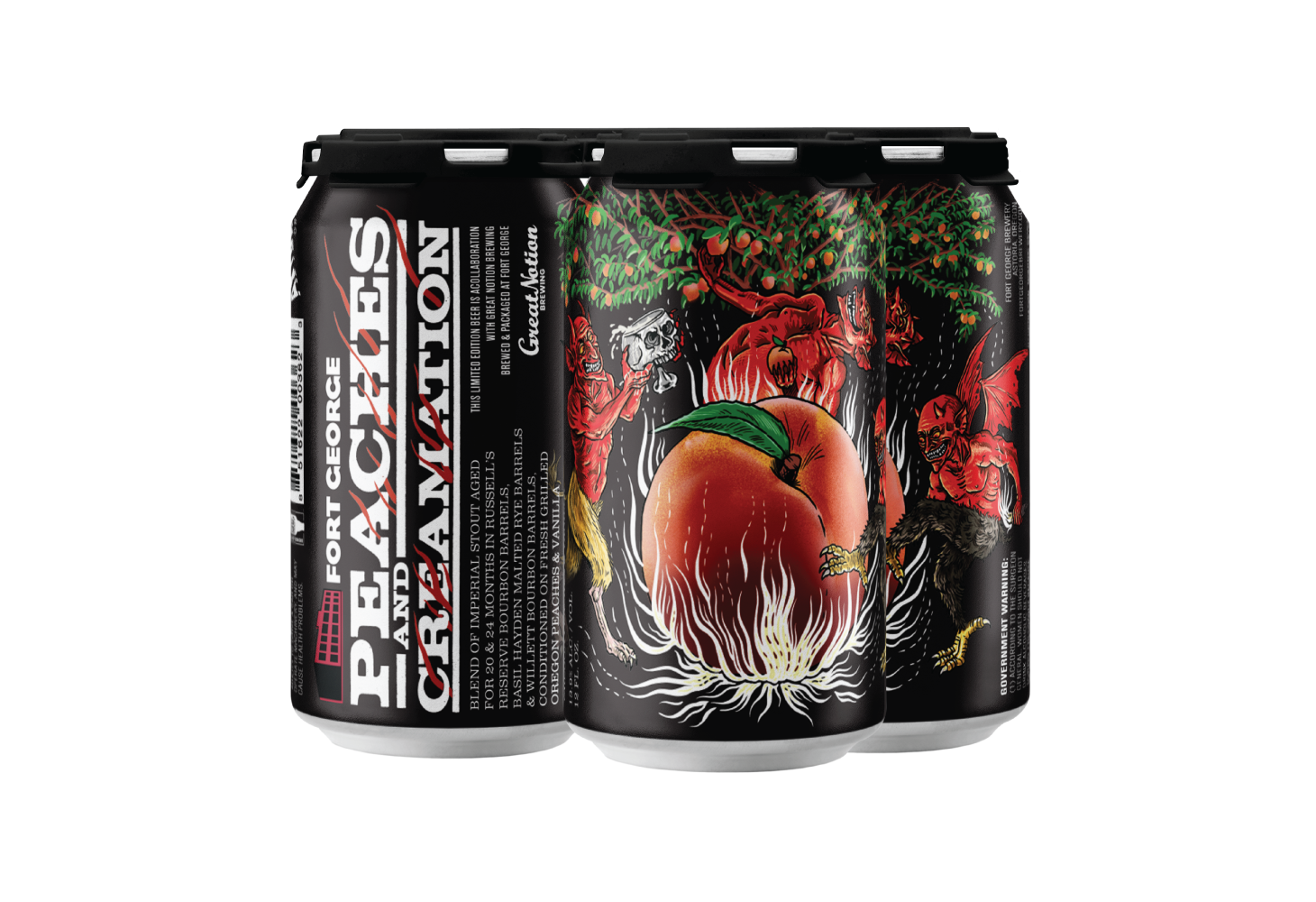A supremely dense and creamy Bourbon Barrel Aged Stout conditioned on over 800 pounds of fresh grilled peaches. The brewers at Fort George and Great Notion know a thing or two about stouts… and adding things to stouts. Between the two of us, we’ve added thousands of things to stout. But we’ve never added this many peaches.